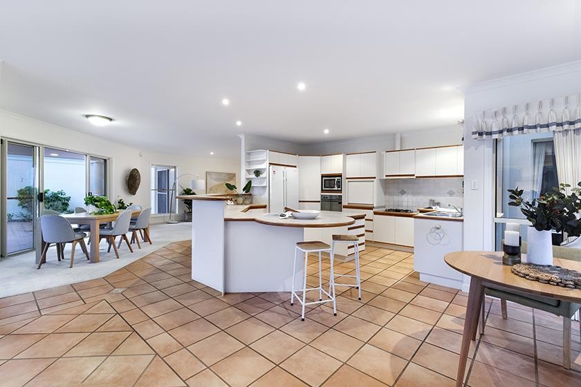Open plan living, lounging and dining and kitchen, all with a view to the water, with glass windows and sliding doors flowing to the undercover outdoor living - an absolute reflection of the luxury available in this area