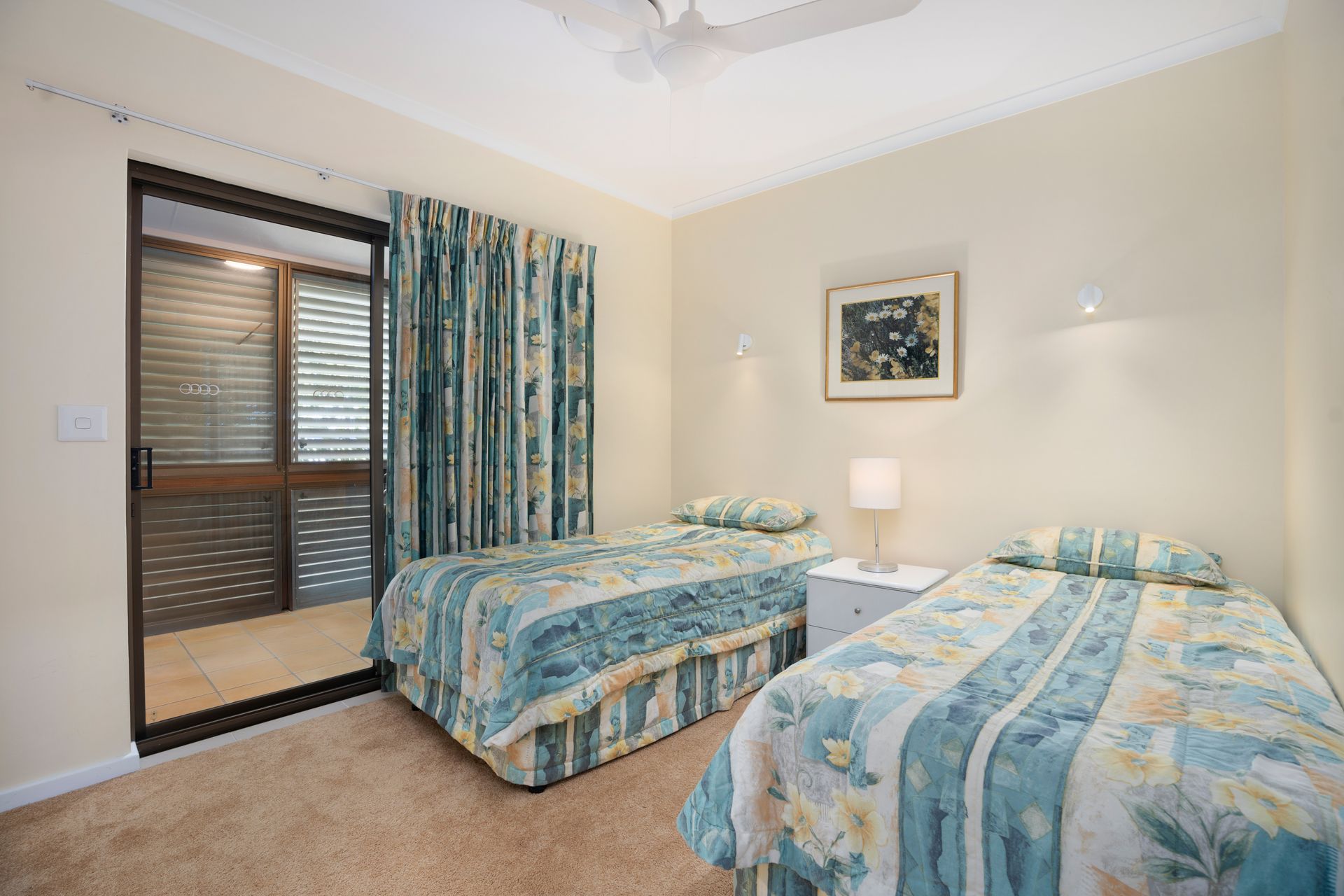 The property is carpeted throughout, has ceiling fans, flyscreens and a single Lock-up Garage.