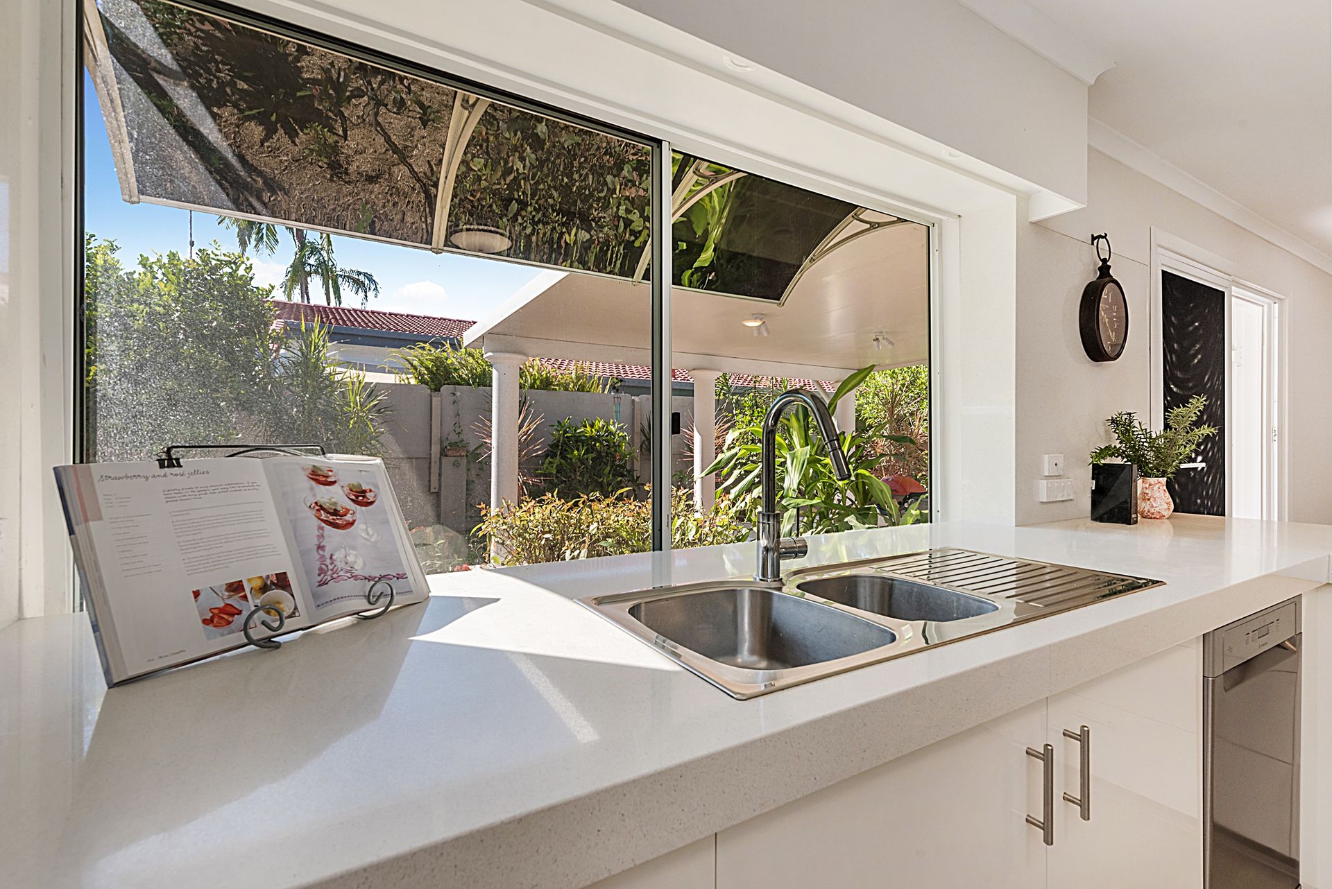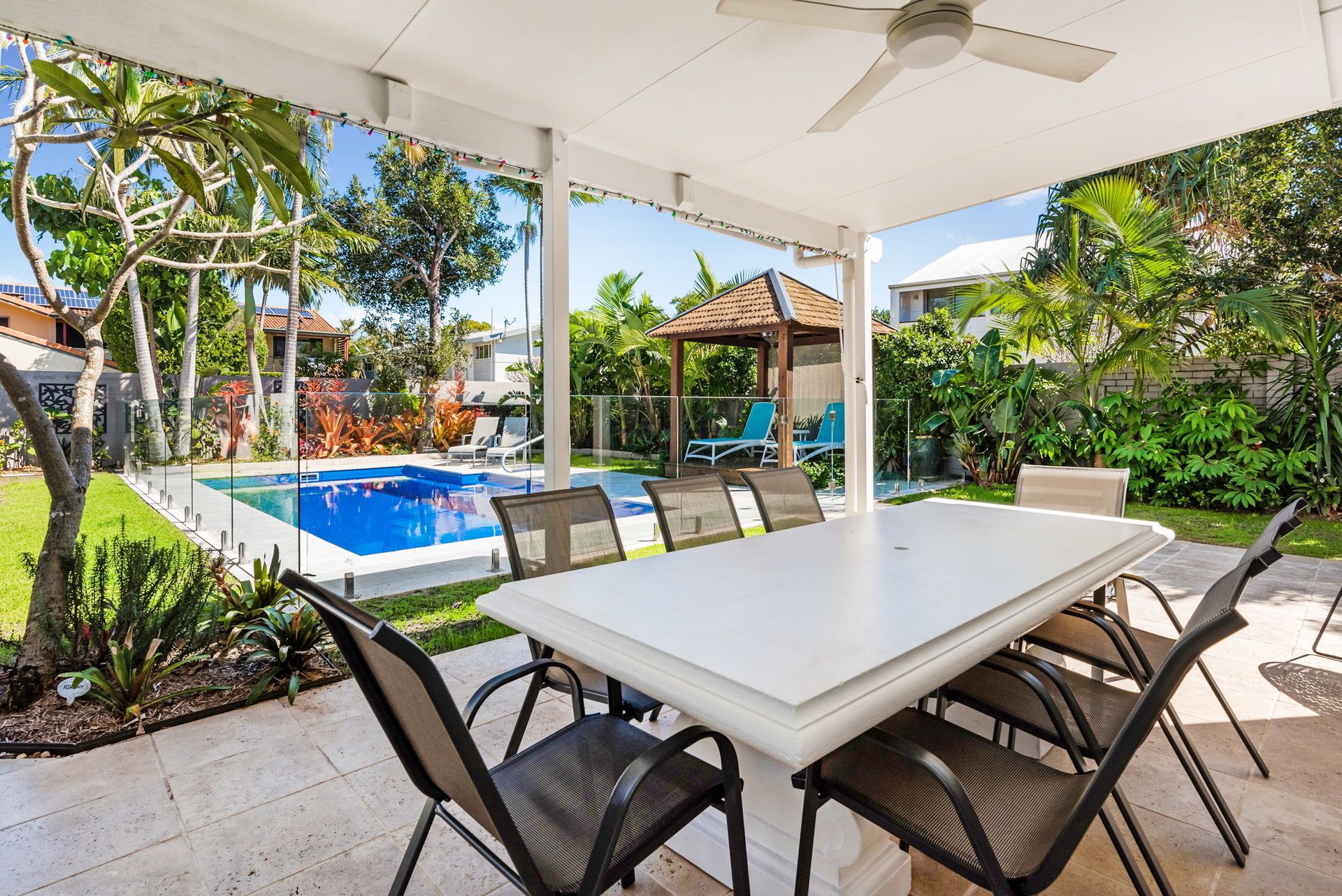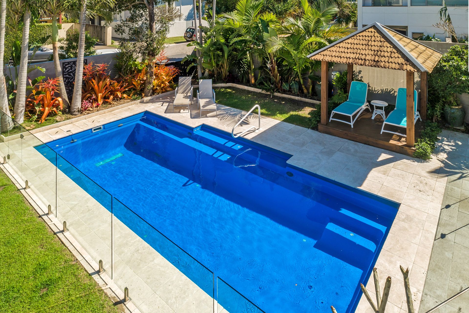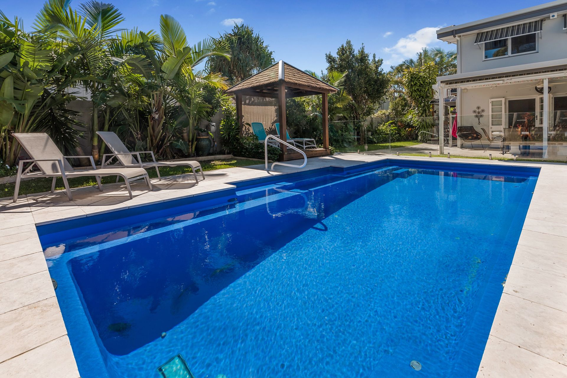 The Property: Entering the via security gate, you will be greeted with the first sign of paradise; an established garden with frangipani’s blossoming, a Bali influenced hut with sun lounges, beautifully finished, inground pool with solar heating & pool temp is set to 24-27 degrees celcius. The light outdoor tiles lead you to the front alfresco dining and entertaining area with TV and outdoor shower.