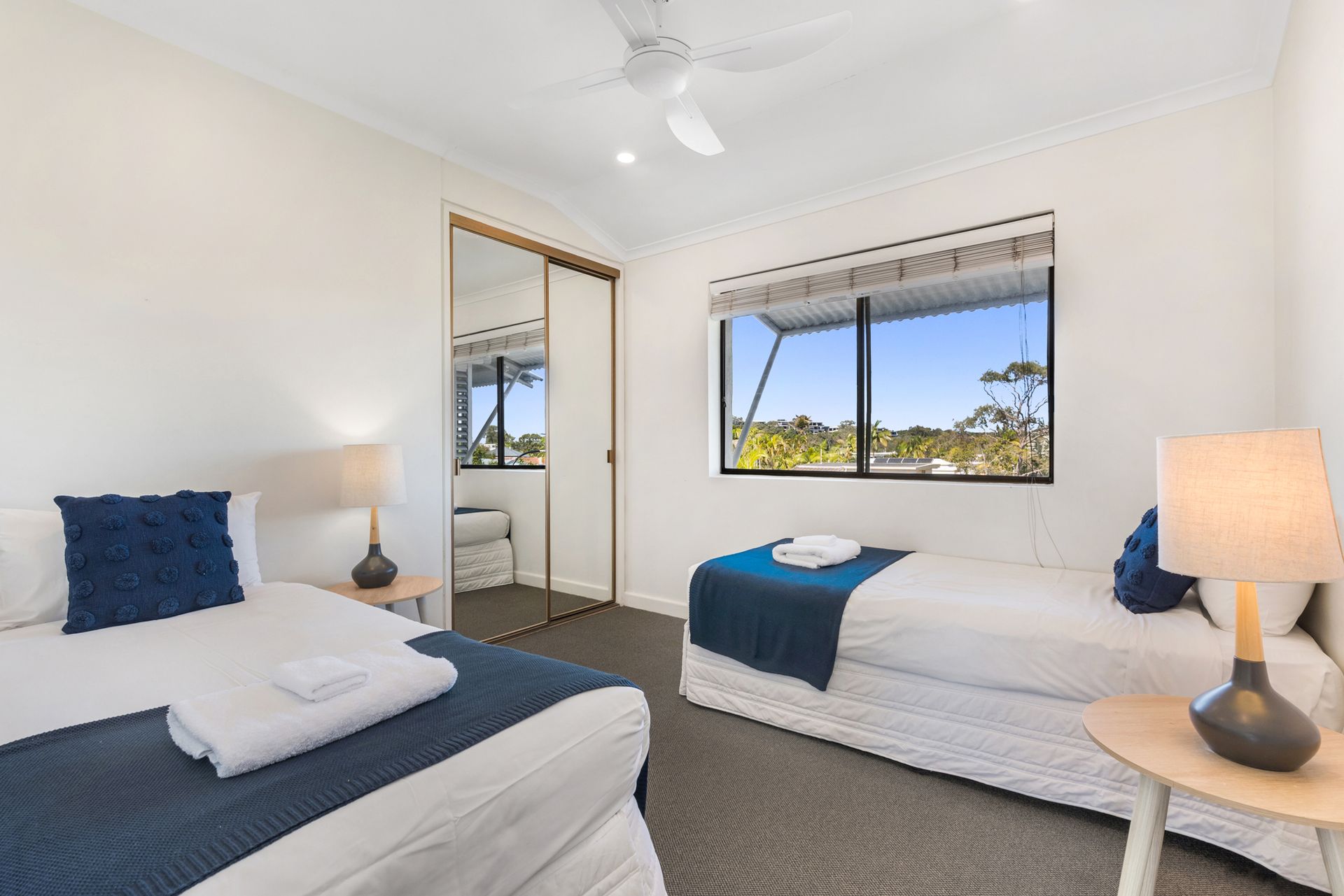 Bedroom 3 - 2 Single beds with built in robes, ceiling fan and adjoining sunroom with fold out couch.