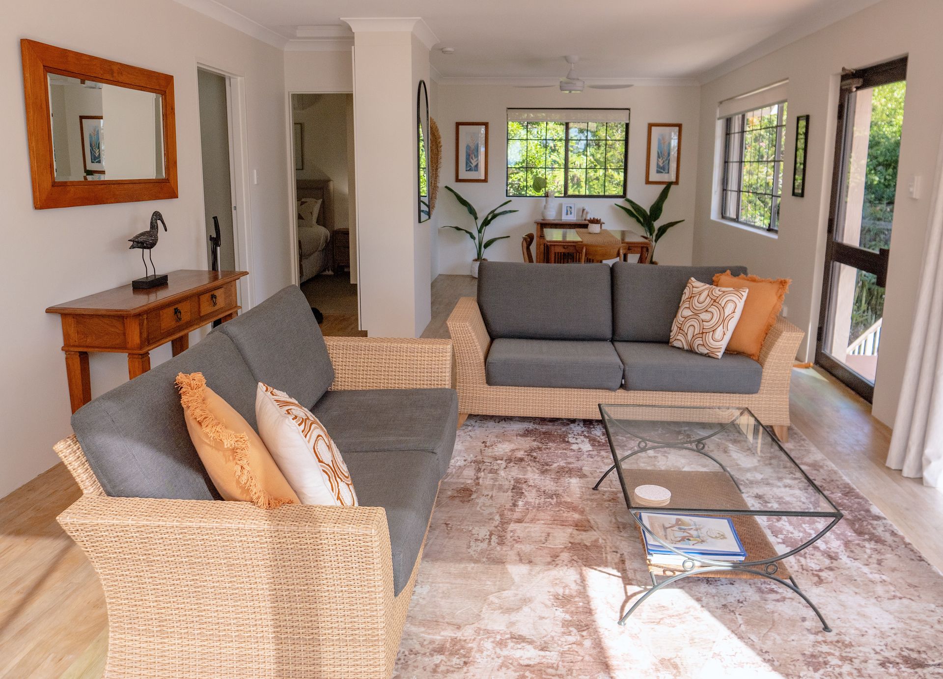 Our properties are fully self-contained with full kitchens and laundries. Linen & bath towels are supplied with beds made up, along with a starter kit of tea, coffee, sugar, toilet paper, milk and detergents etc. (to get you through your first night) . Additional supplies may then be purchased from local supermarkets. Please remember to bring your beach towel. A reminder that 'check out' is no later than 10.00am and 'check in' is not before 3.00pm.