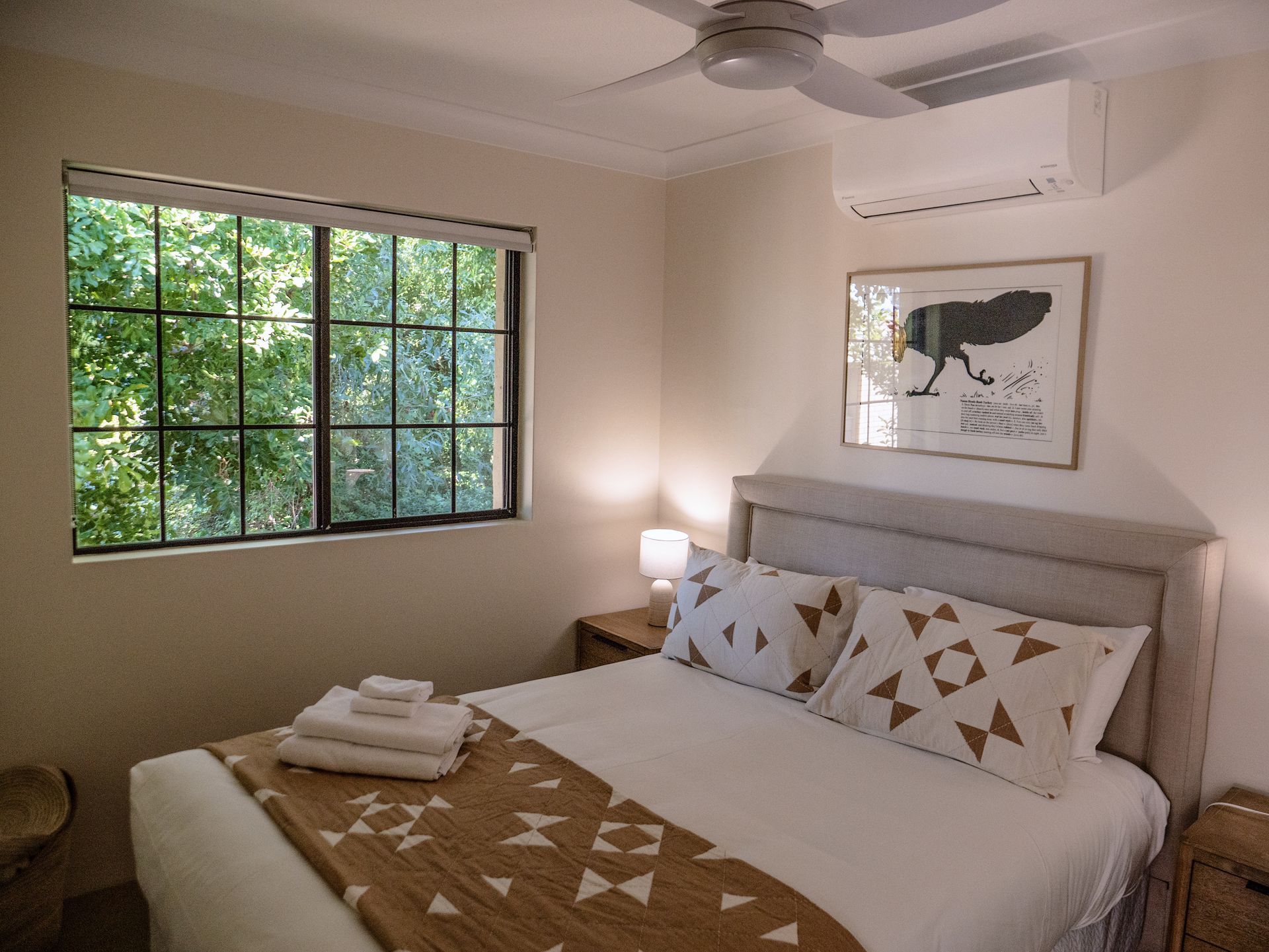 The Unit- This apartment located in a quiet complex offers 1 Bedroom with a queen bed and 1 bathroom that accommodates 2 persons. The bedroom is air-conditioned and has a ceiling fan. There is also a ceiling fan in the living area.