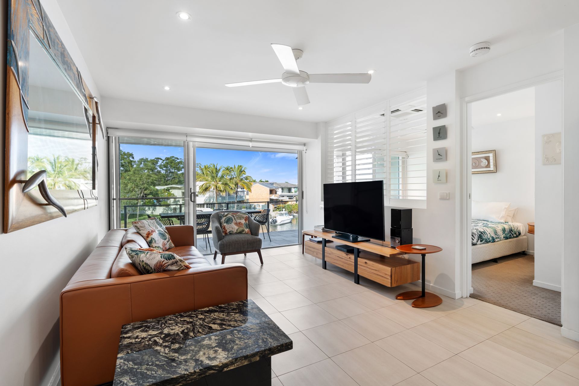 UNIT 12 is accessed via stairs (no lift) and features reverse cycle air-conditioning with an open plan living with quality furnishings including a lounge, LCD TV, free wi-fi access, ceiling fans and full length windows to capture fantastic Noosa river view from its balcony. The unit has a gourmet kitchen provided with 2 x USB ports, Miele oven, Bosch & AEG appliances, and a dishwasher. It has full private laundry facilities with front loader washing machine & dryer. The balcony has a dining table and a sun-lounge for enjoying a late afternoon Noosa cocktail.
