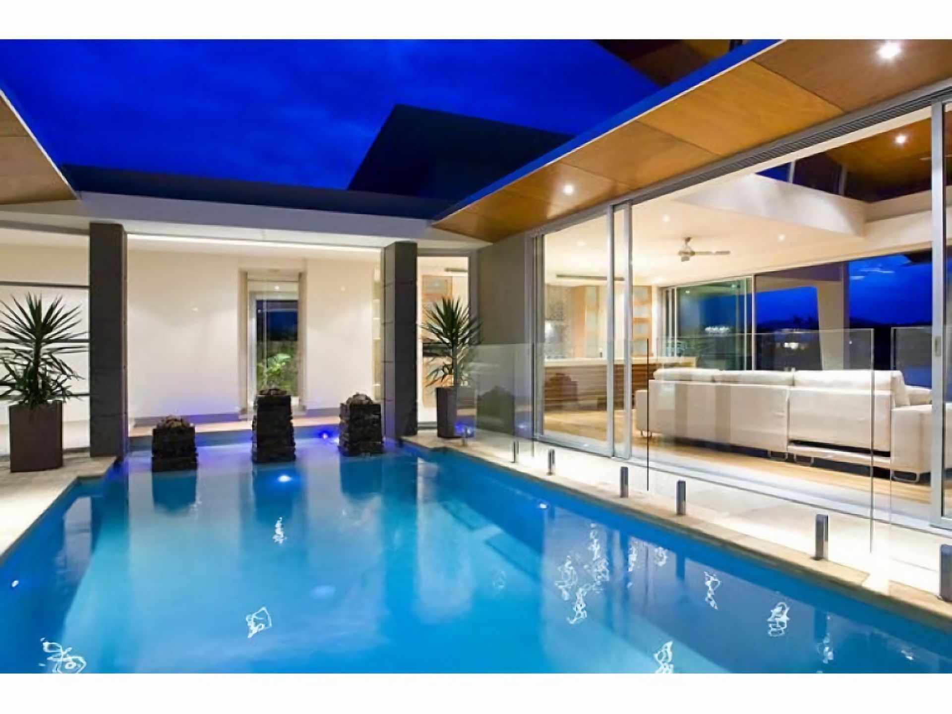 Environmentally friendly design, high raked ceilings and sky windows capture the eastern morning sun, and deep verandas offer shade to the west. Stunning water features are scattered across the home inside and out.