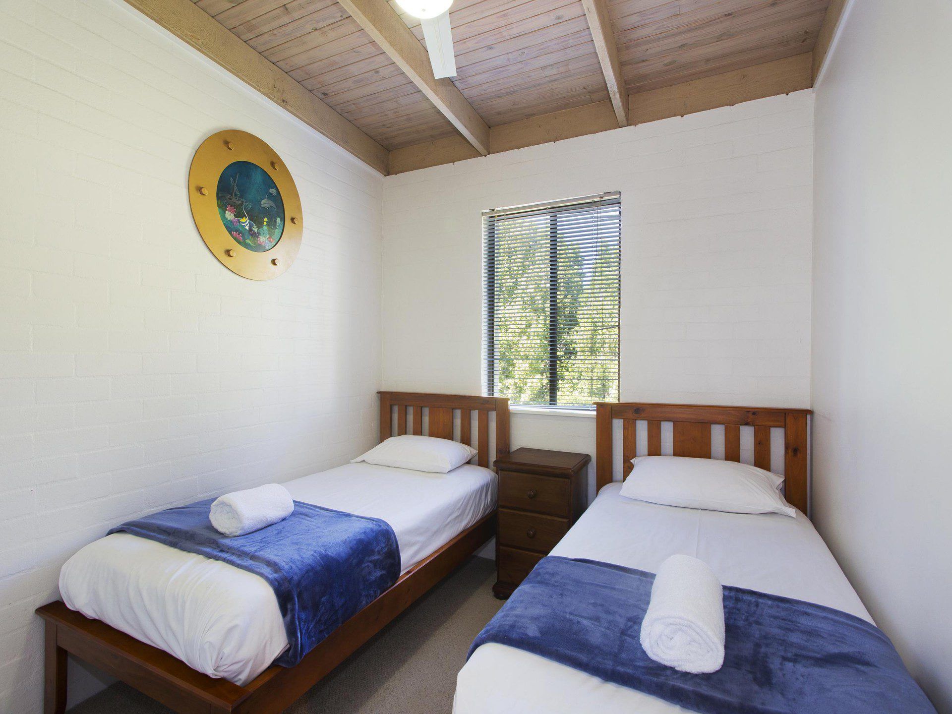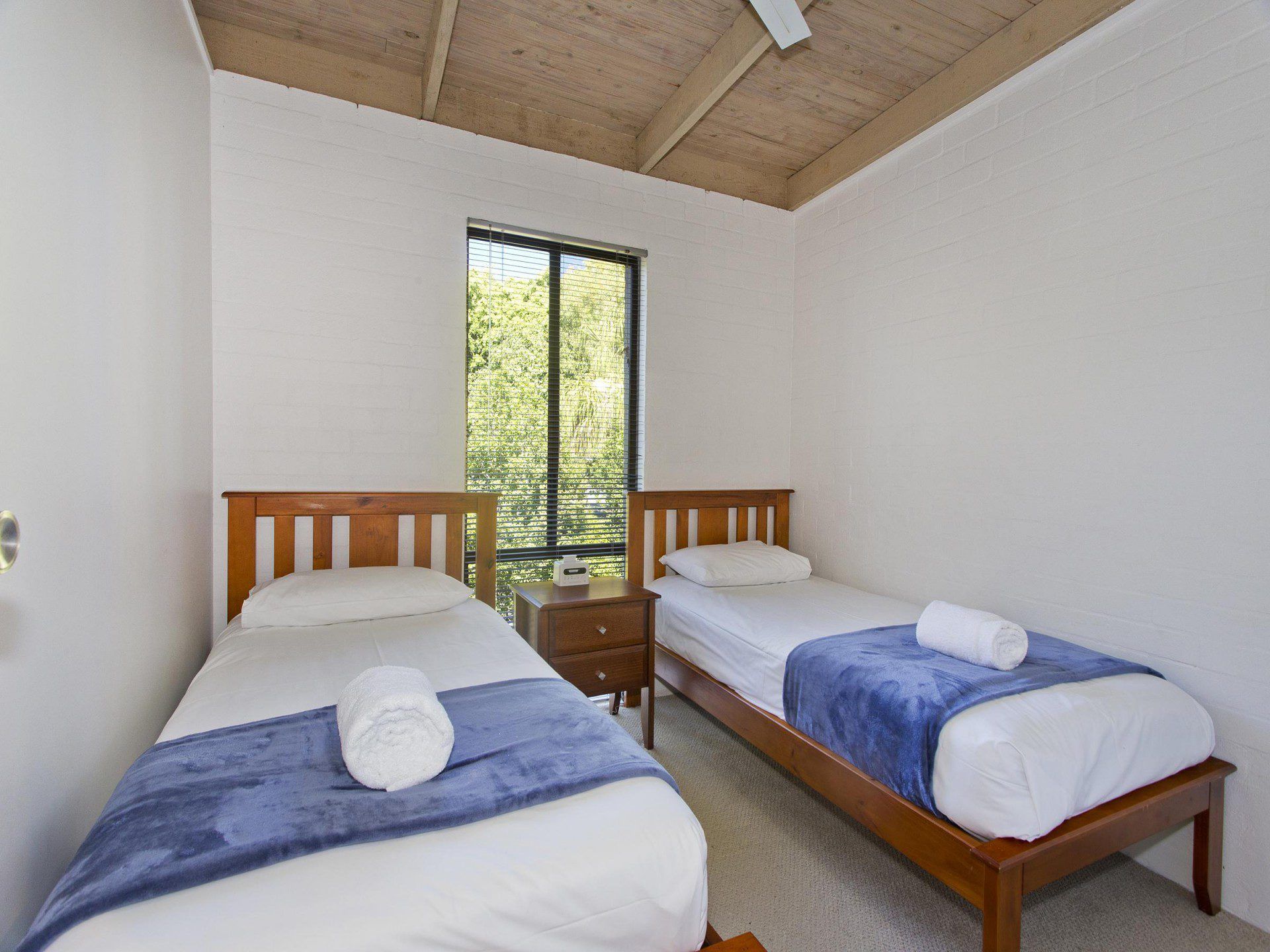 The Unit - The entry level features the living and dining areas plus the well-equipped kitchen and opens out onto the private courtyard for alfresco dining for six. This has a great sunny pool in the complex with grassed surroundings, single carport, air conditioning throughout and ceiling fans in all bedrooms. There is a powder room downstairs and laundry with washing machine only but outside clothes line provided. Also, a large screen smart TV, and DvD player and free internet access are available.