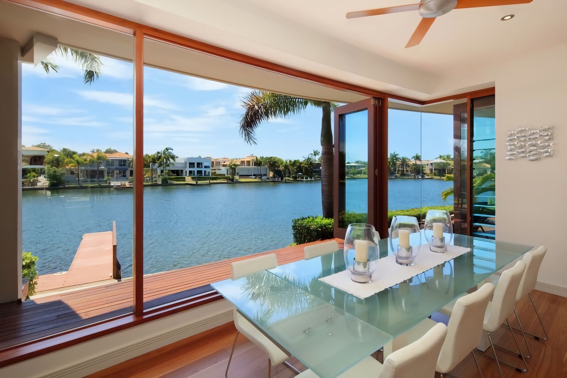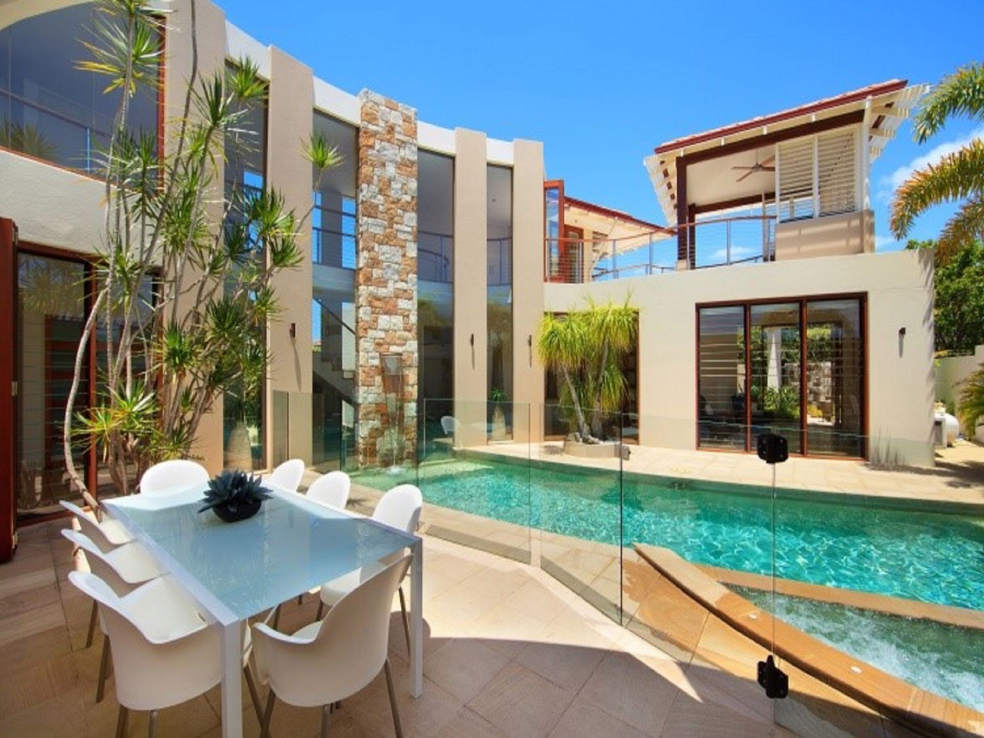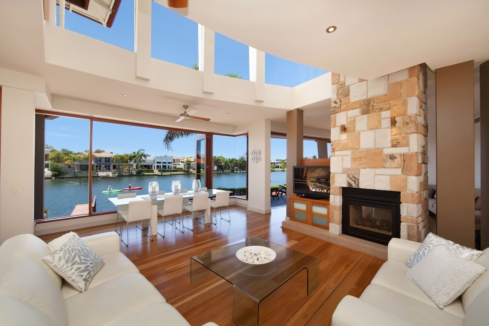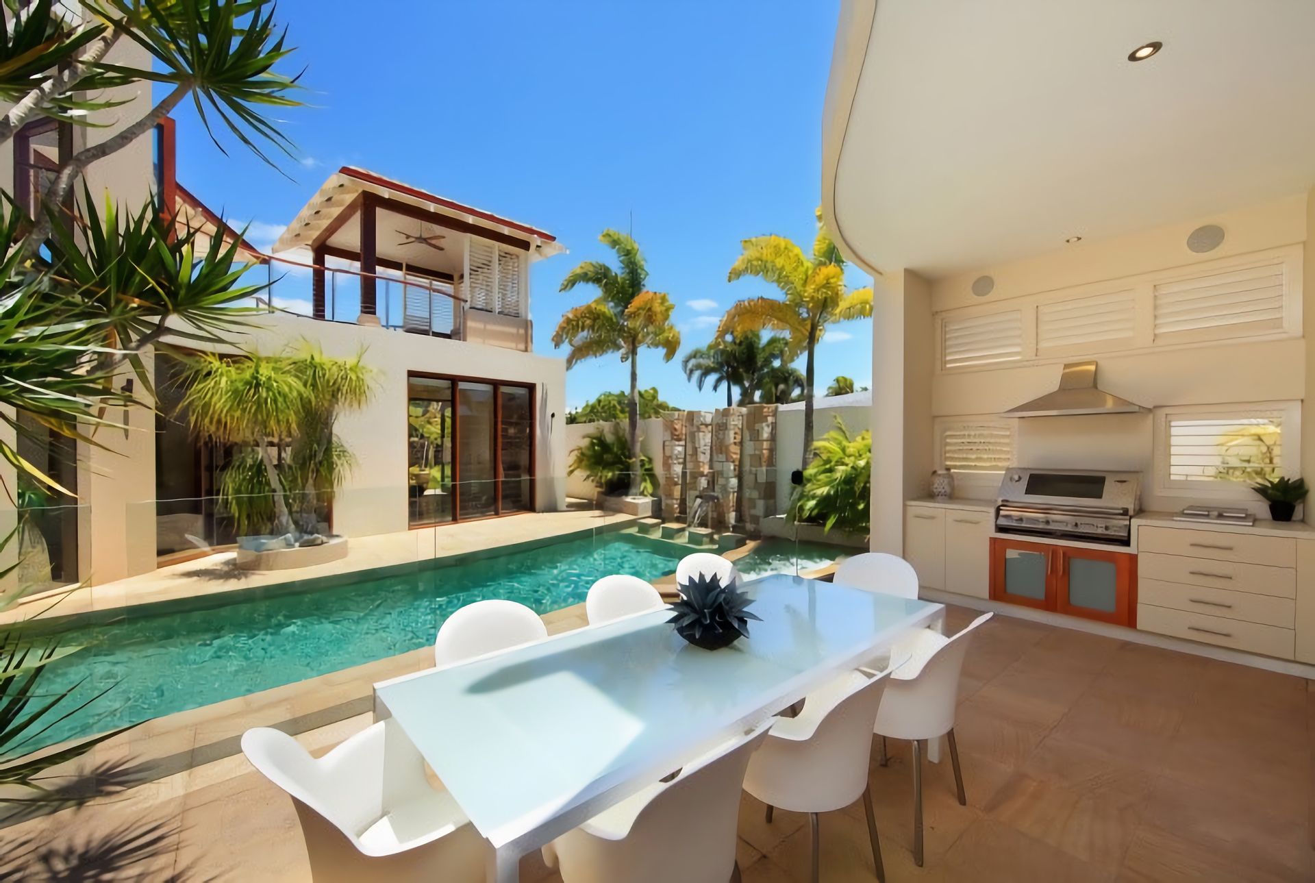 The Location - A waterfront executive Noosa Waters Holiday Home in Noosa Waters, an exclusive canal estate next to the Noosa River that features some of the most prestigious homes in Noosa. Many homes in the estate have won design awards and feature stunning designs by Noosa leading architects. 36 The Promontory is no different being designed by well-known designer Paul Clout. Much of Noosa Waters is waterfront property and as such offers an excellent lifestyle choice. The canal is protected from boating traffic and from tidal surges by a private loch. The loch joins Noosa Waters directly to the Noosa River. This is the perfect arrangement for ease of access to waterways and the ocean whilst maintaining security and privacy for owners in Noosa Waters. Close to Noosaville and the Noosa River, Noosa Waters is only a short walk or drive to the shops, cafes and fine dining along the riverfront at Gympie Terrace.
