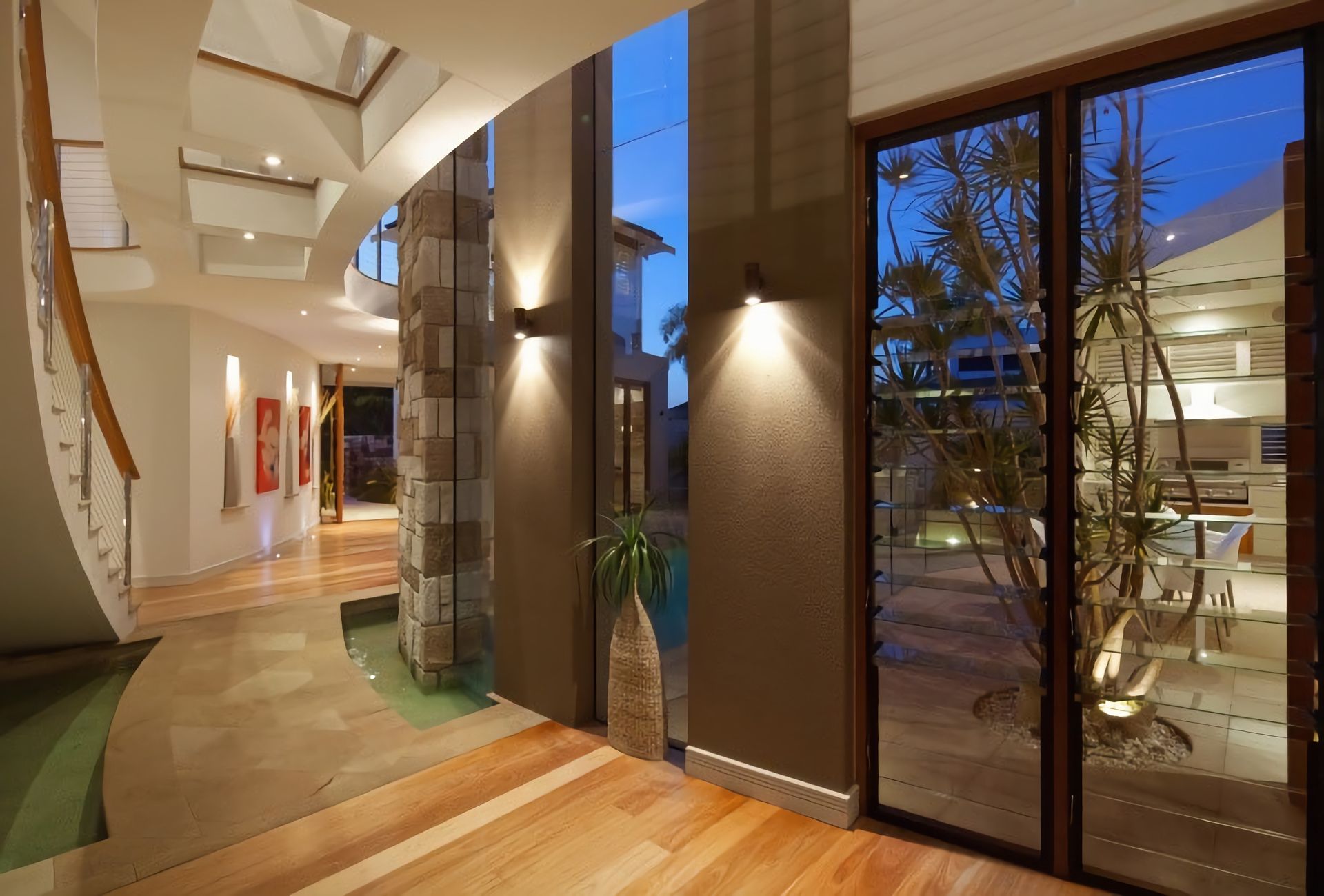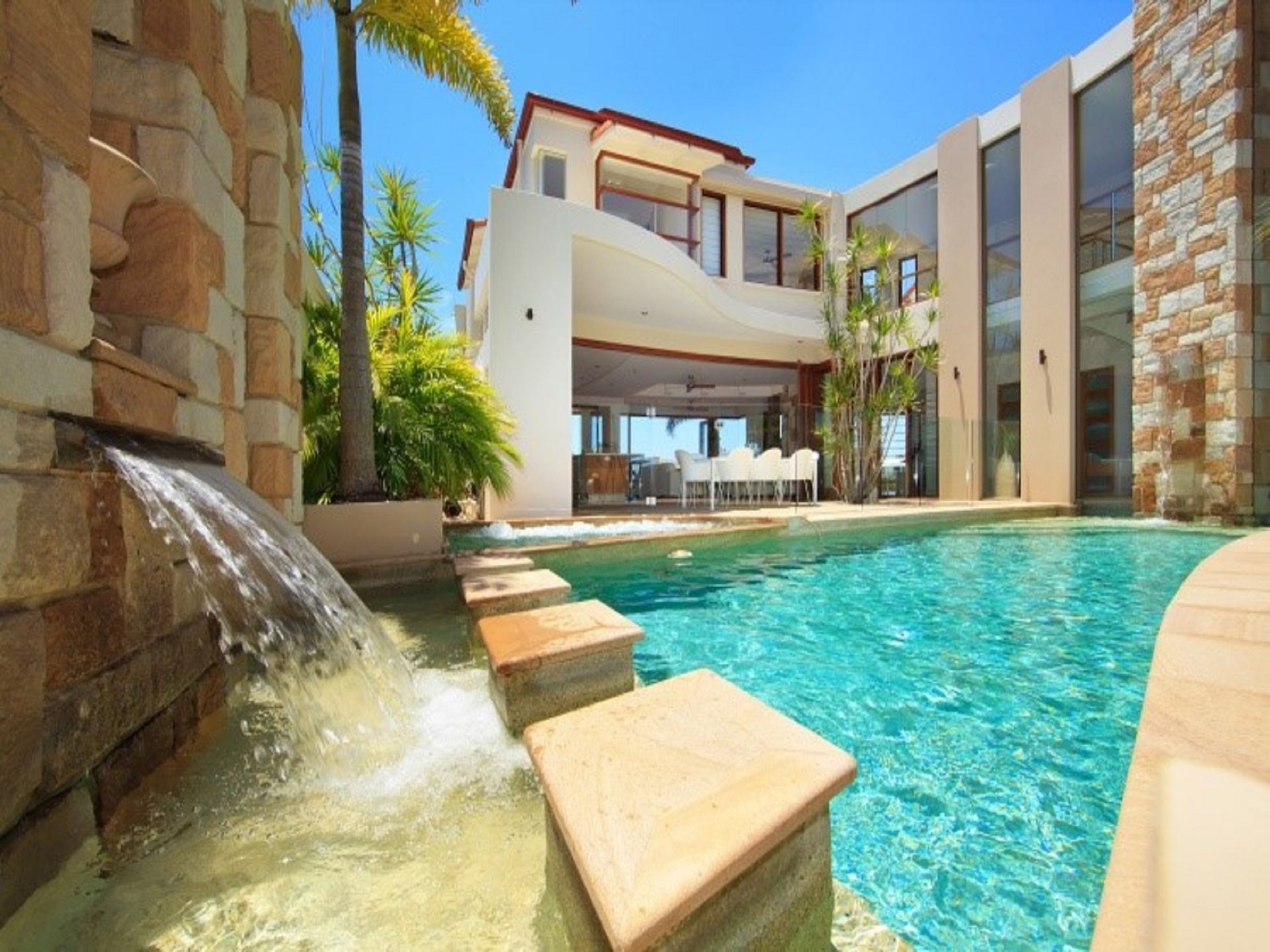 Please take note that the house also features a 29 metre water frontage (not fenced) and a 3 Water features plus water flows through the home - Consideration needs to be given with young children.