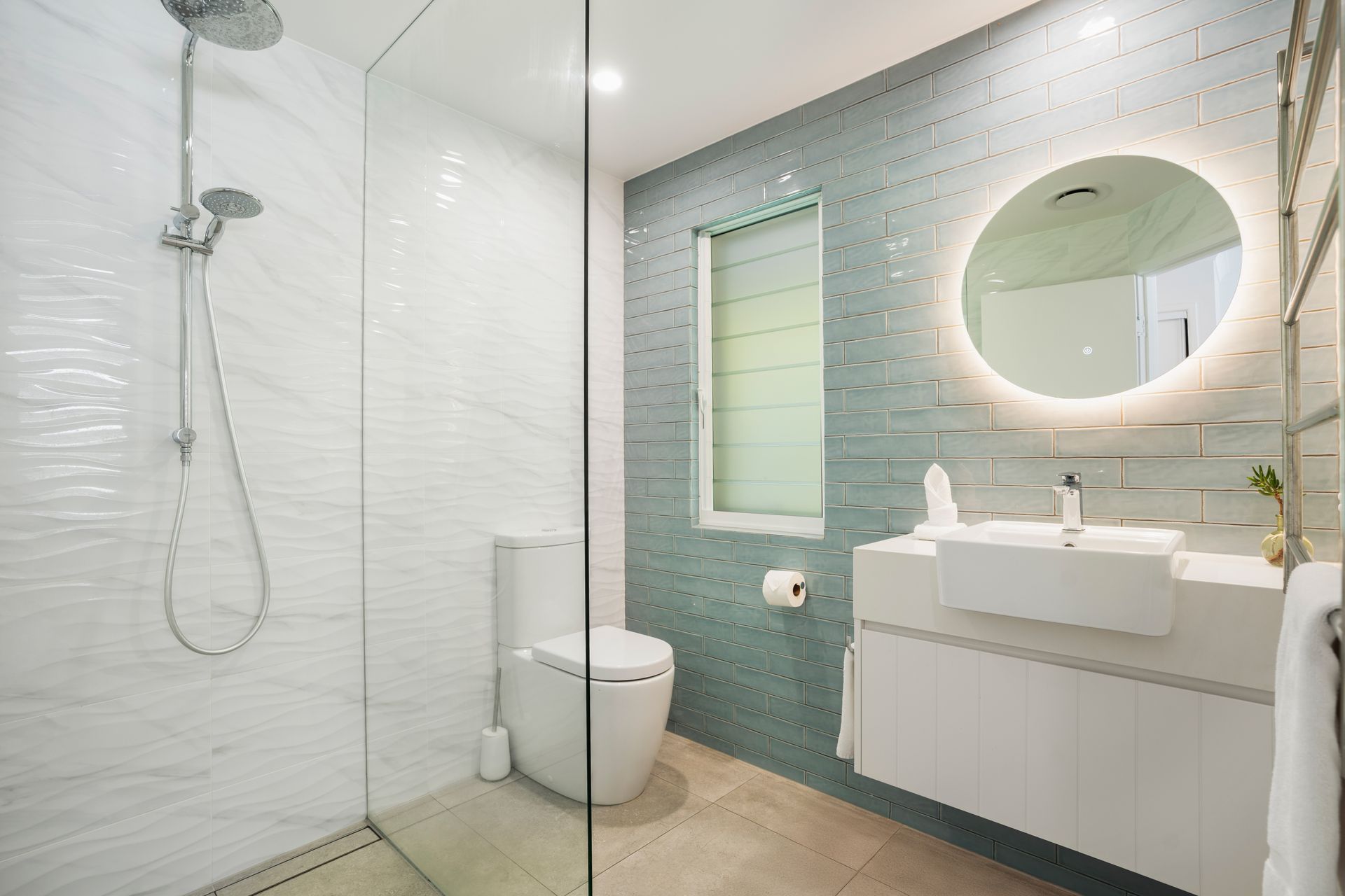 The Unit – Upstairs is a Master suite with Queen bed includes a large en-suite, which features a double vanity and shower, plus a covered balcony with amazing water views and a Samsung 43 inch wall mounted Smart TV. Second bedroom is also upstairs with 2 King Singles (can be made up as a King bed but must be requested at time of making booking by calling Noosa staff) features an en-suite with shower, vanity plus a 43 inch Samsung wall mounted Smart TV. Third bedroom is downstairs with Queen Bed plus a 43 inch Samsung wall mounted Smart TV and an ensuite bathroom is located outside the door. There are built-in robes.