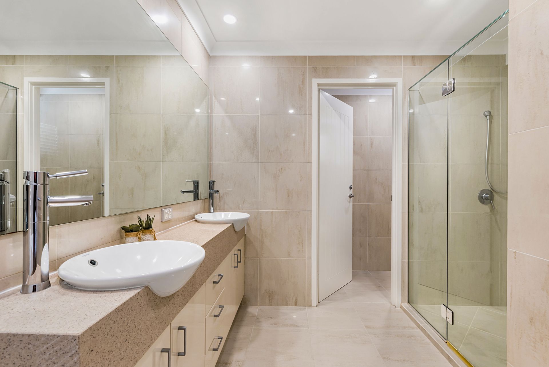 The house features 3 Bedrooms: King in the Master, located upstairs, and 2 x Queens which are downstairs, plus 1 x Double (divan in the 2nd living area in the media room- upon request) and 2 x Bathrooms including an ensuite to the master with corner spa and double vanity.