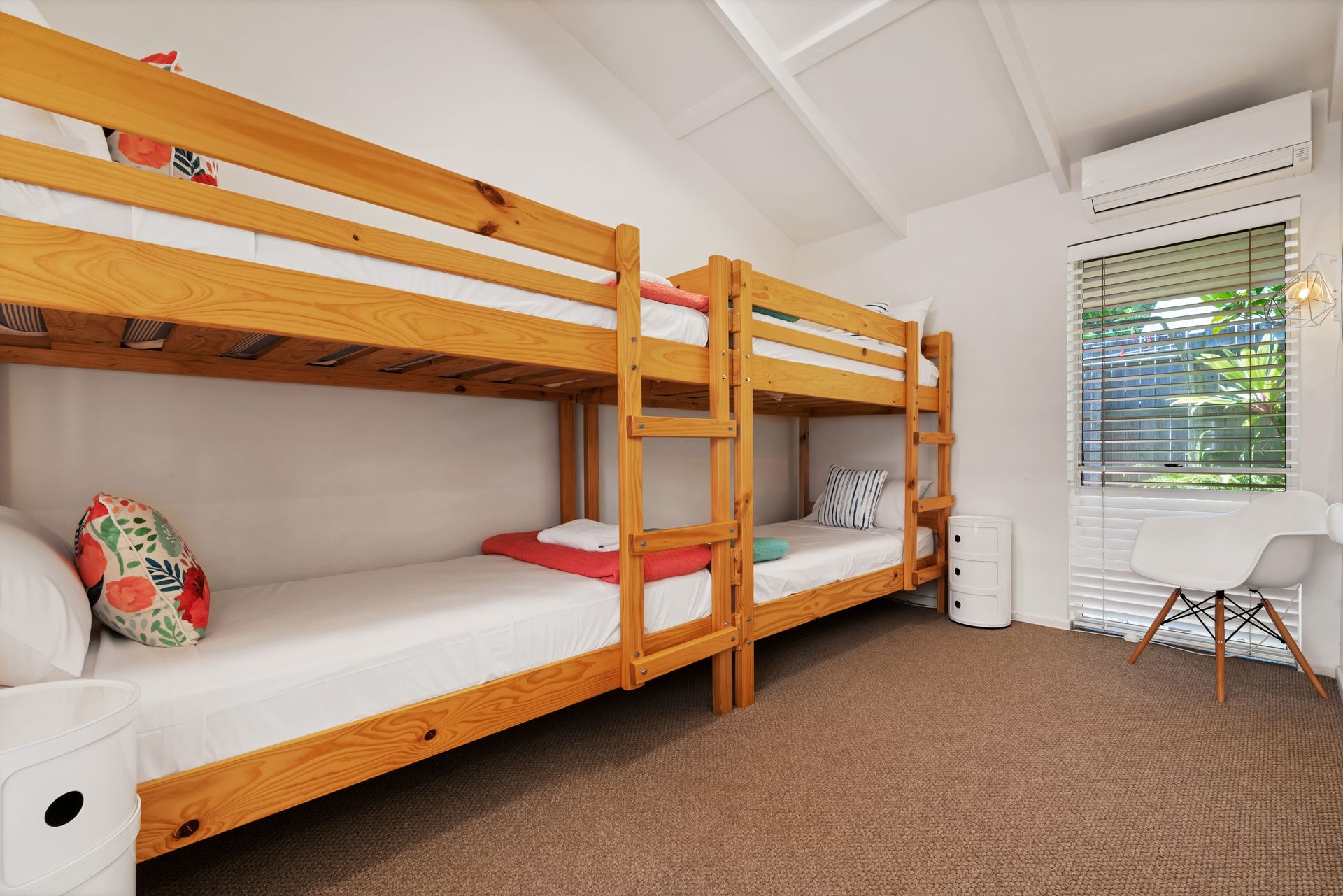 The master bedroom has 1 x Queen bed with ensuite and offers a 40-inch HD TV. The second bedroom has a queen bed, and the third bedroom has 2 x sets of bunk beds for 4 children (Please note that the bunk beds are smaller in size and only suitable for children so we can only take bookings for up to 4 adults and 4 children) . Please note parents must supervise young children with bunk beds.